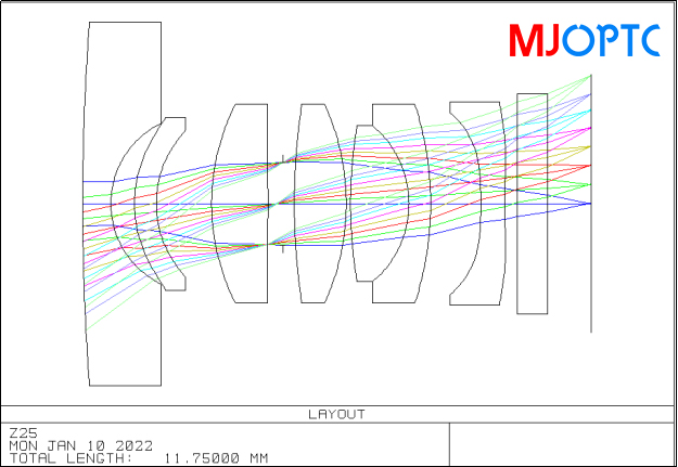 Optical total length: refers to the distance from the first surface of the lens in the lens to the image surface. Shown as above picture, the TTL is 11.75mm